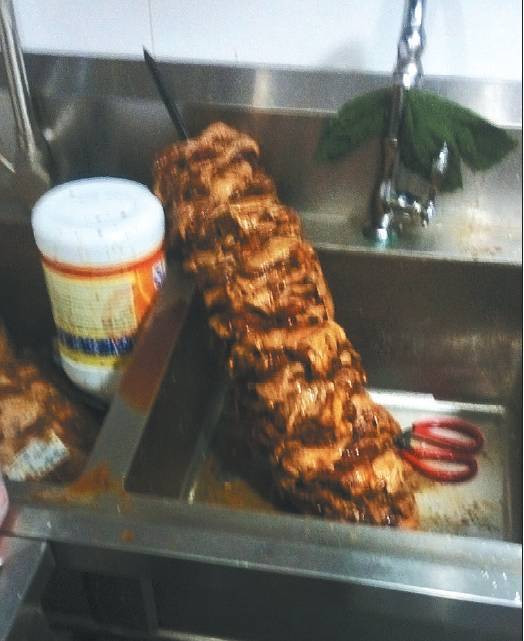 △7月8日,北京像素kao 烤肉饭后厨,刚烤好的肉被随意放在洗碗池里